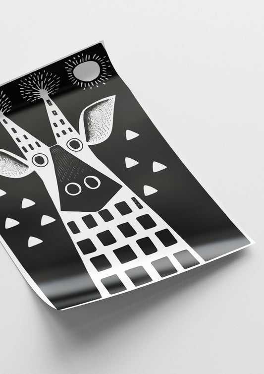 Affiche déco chambre bébé enfant - Portrait girafe Montessori C - Noir et Blanc