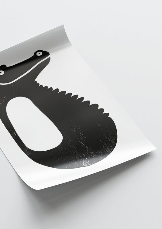Affiche déco chambre bébé enfant - Portrait Crocodile Montessori A - Noir et Blanc