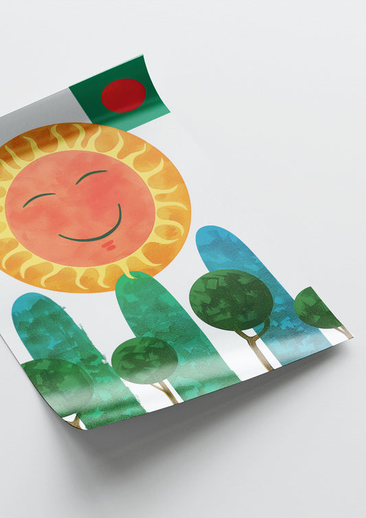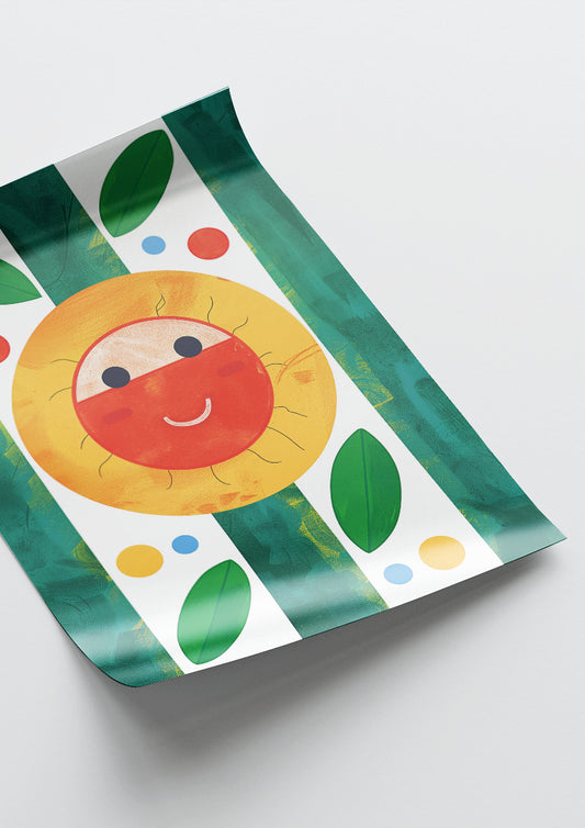 Affiche déco chambre bébé enfant - Happy soleil A géométrie - rouge vert