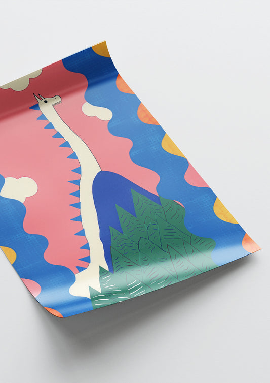Affiche déco chambre bébé enfant - Dragon C géométrie - bleu rose