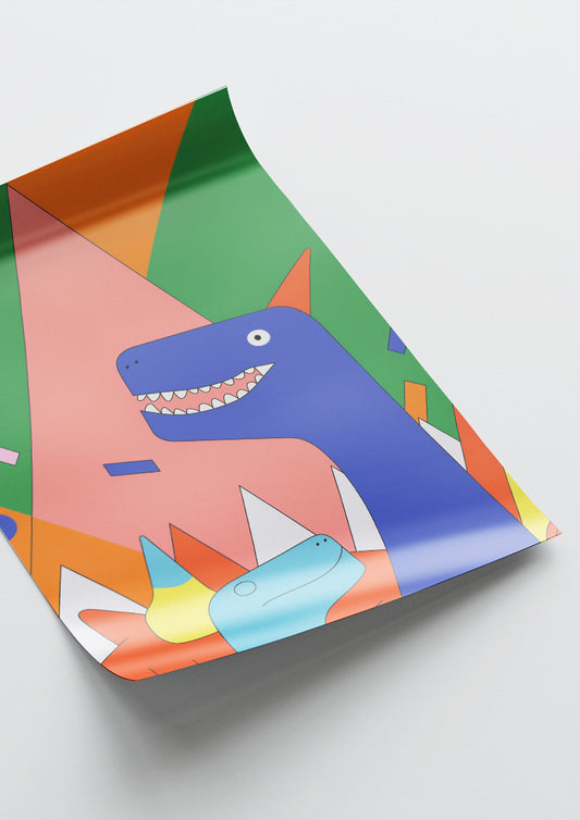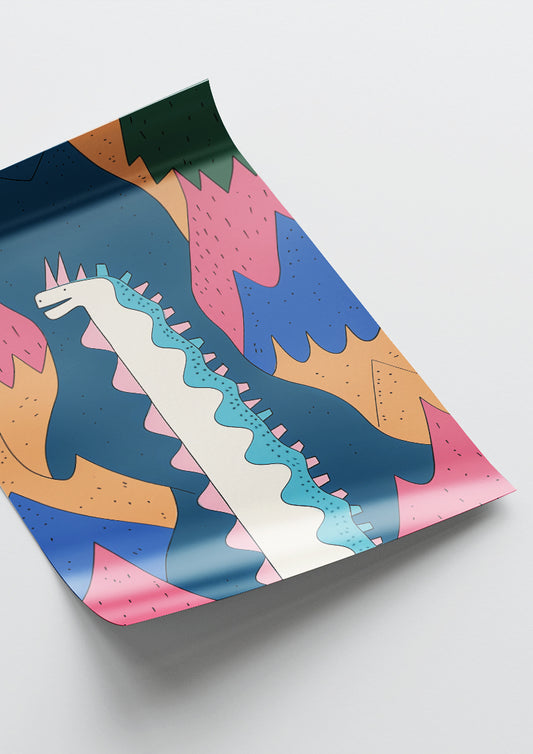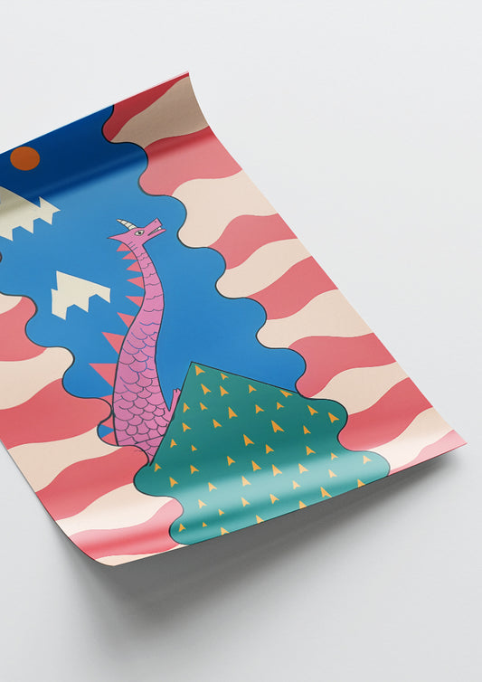 Affiche déco chambre bébé enfant - Dragon A géométrie - bleu rose