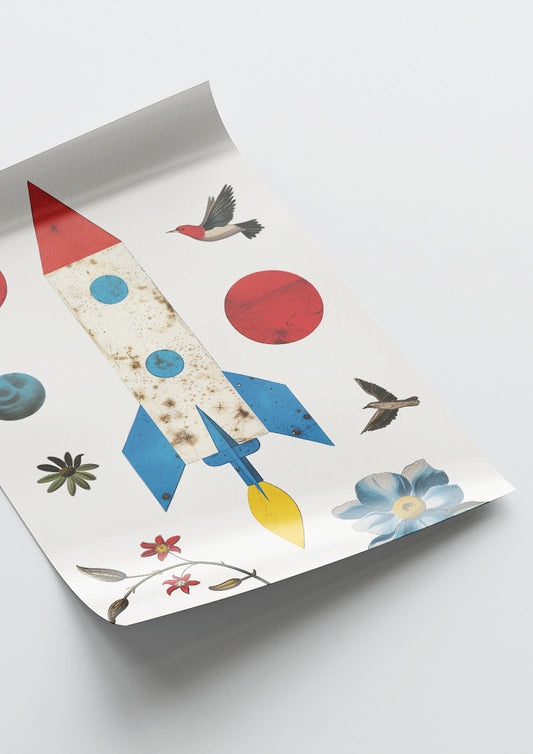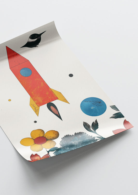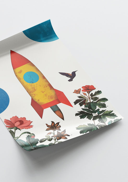 Affiche déco chambre bébé enfant - Fusée jungle C - rouge bleu