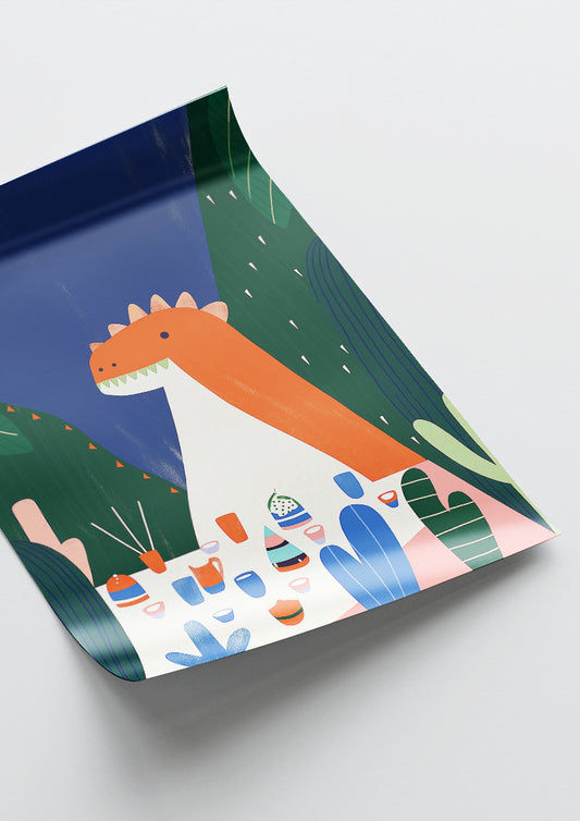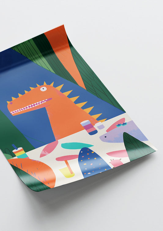Affiche déco chambre bébé enfant - Dinosaure anniversaire B - orange bleu