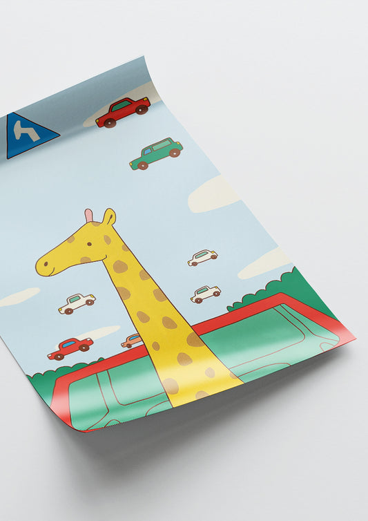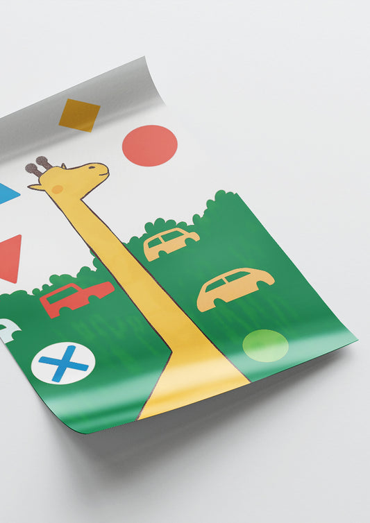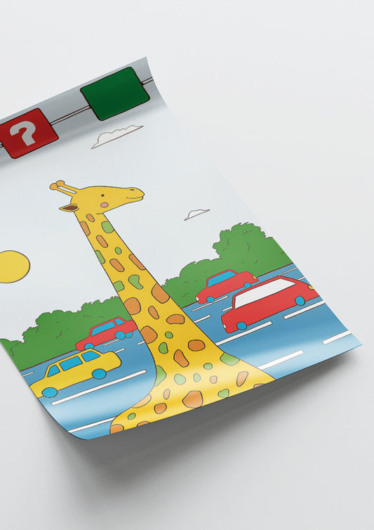 Affiche déco chambre bébé enfant - Girafe traffic B - jaune vert