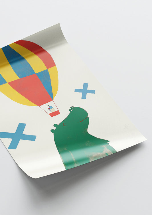 Affiche déco chambre bébé enfant - Hippopotame B géométrie - vert jaune