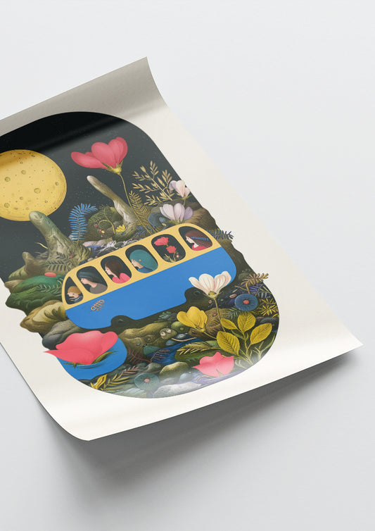 Affiche déco chambre bébé enfant - Bus plante A - bleu vert