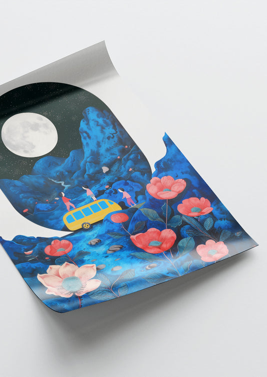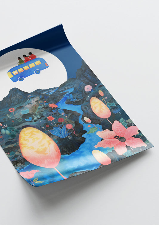 Affiche déco chambre bébé enfant - Bus plante B - bleu rose