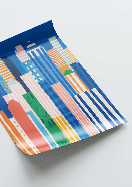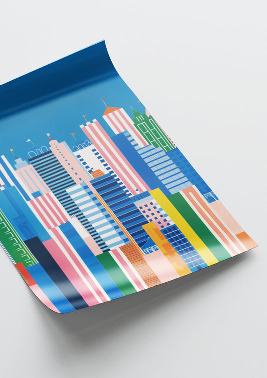 Affiche déco chambre bébé enfant - New York Vertical B - Bleu Rose