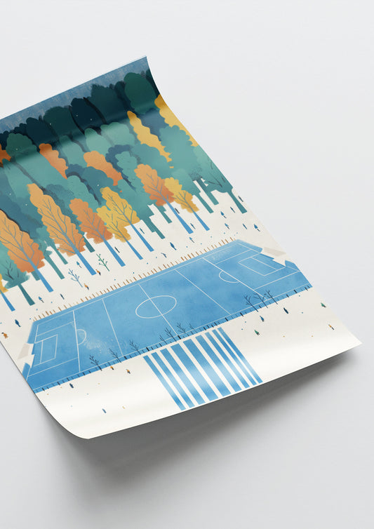 Affiche déco chambre bébé enfant - Terrain de foot paysage A - bleu