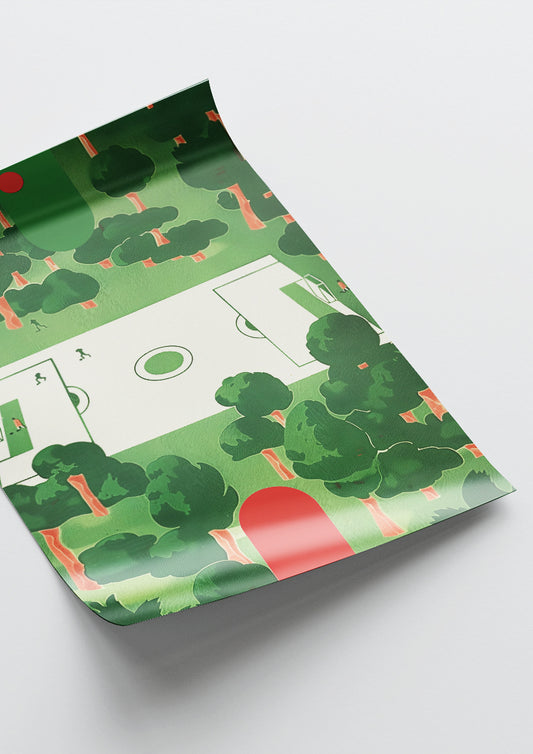 Affiche déco chambre bébé enfant - Terrain de foot paysage C - vert