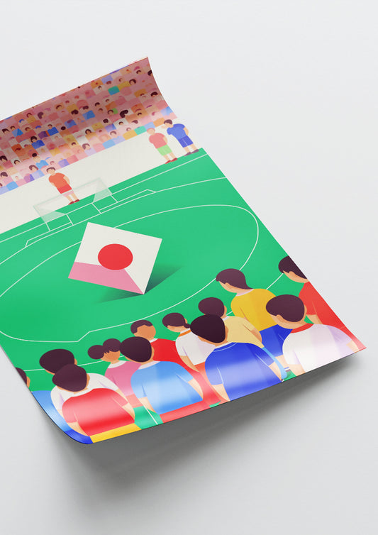 Affiche déco chambre bébé enfant - Terrain de foot paysage B - vert