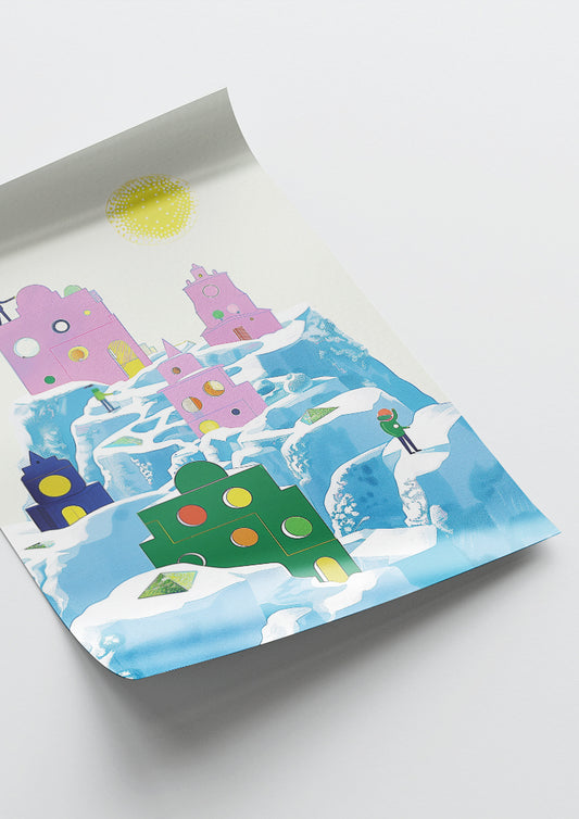 Affiche déco chambre bébé enfant - Château fort A - rose vert