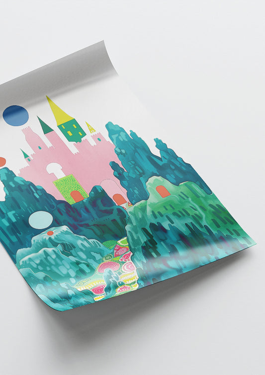 Affiche déco chambre bébé enfant - Château fort C - rose vert