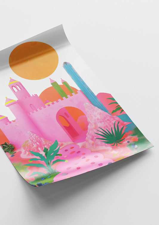 Affiche déco chambre bébé enfant - Château fort B - rose vert