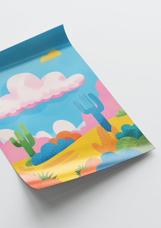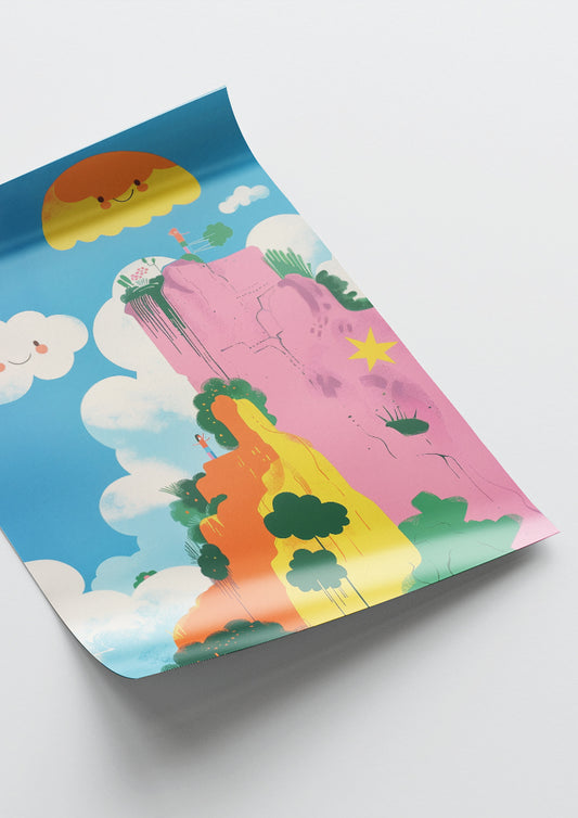 Affiche déco chambre bébé enfant - Nuage paysage C - bleu rose