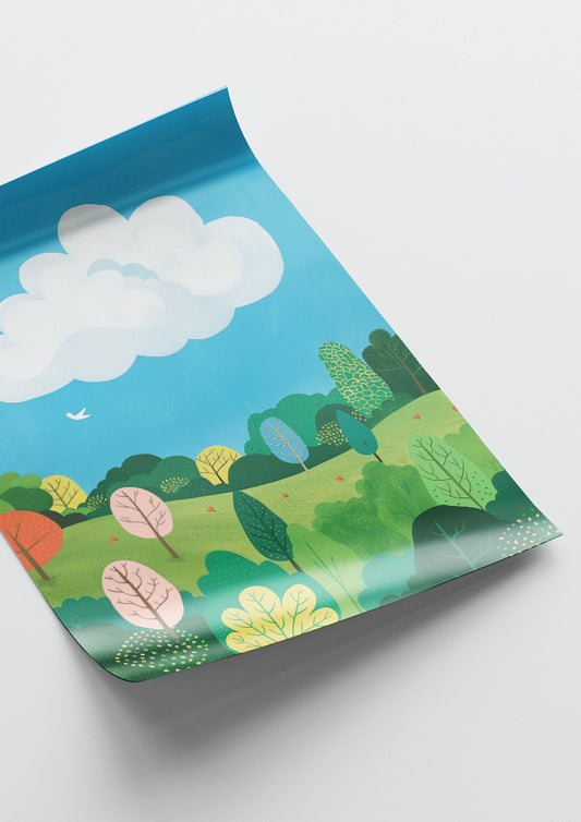 Affiche déco chambre bébé enfant - Nuage paysage B - bleu vert