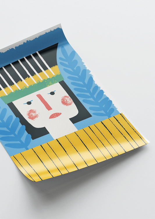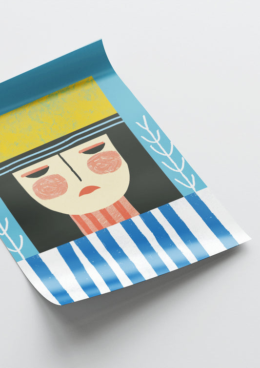 Affiche déco chambre bébé enfant - Portrait pirate bleu C géométrie - bleu jaune