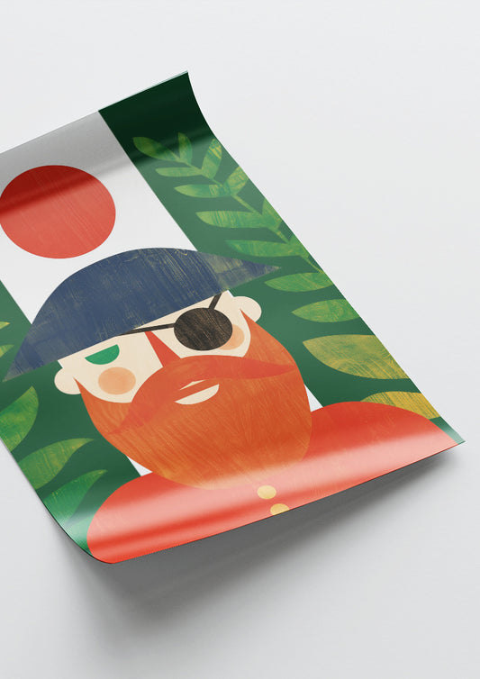Affiche déco chambre bébé enfant - Portrait pirate rouge A géométrie - rouge vert