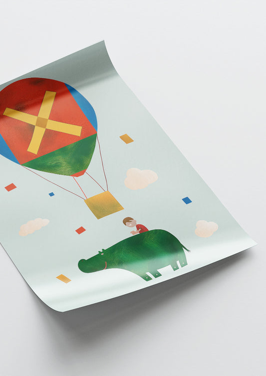 Affiche déco chambre bébé enfant - Hippopotame A géométrie - rouge vert