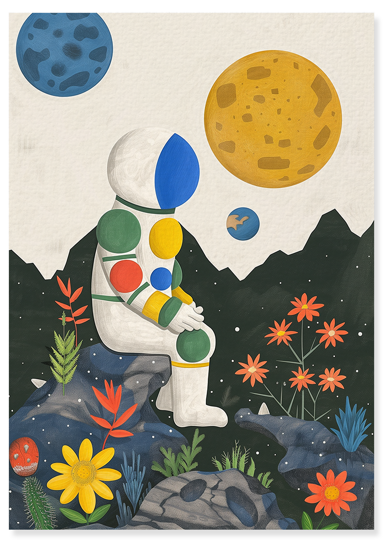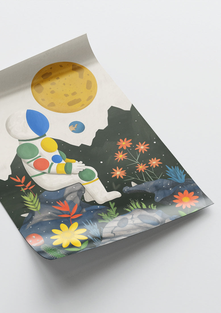 - Un voyage cosmique dans un jardin secret: Cette affiche originale mêlant un astronaute et des plantes transporte votre enfant dans un univers onirique, stimulant sa curiosité.