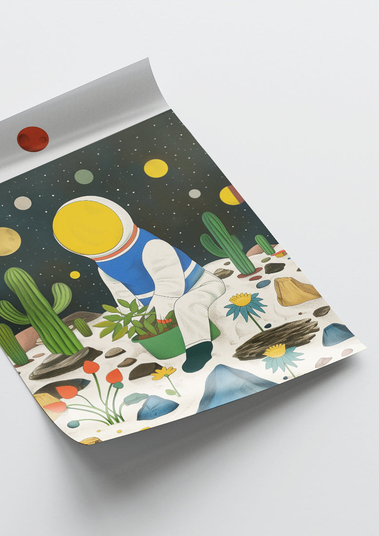 Affiche cosmonaute plante : une oasis de verdure dans l'espace