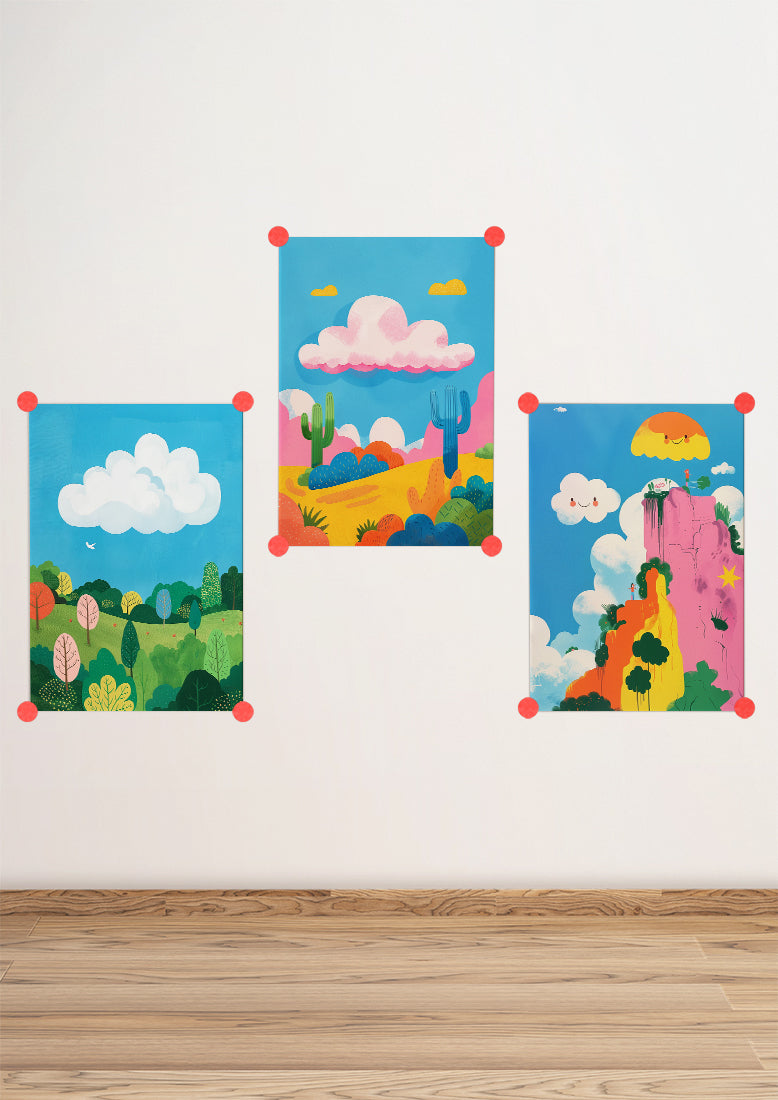 - Un paysage céleste tout en douceur: Cette affiche représente un ciel parsemé de nuages aux couleurs pastel, une illustration poétique qui apportera une touche de sérénité à la chambre de votre enfant.